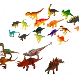 Farverige plastikfigurer af dinosaurer, suppleret med tilbehør, stimulerer fantasien og læring gennem leg.