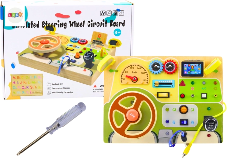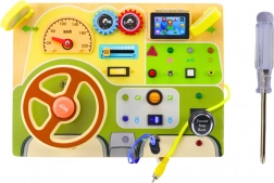 Det træbaserede sensoriske bræt, inspireret af en bils instrumentbræt, kombinerer traditionelle materialer med moderne interaktivitet. Børn vil nyde farvestrålende LED-dioder, knapper, kontakter, drejehjul og skydeknapper, som minder om ægte elementer i en bil. Det kvalitetsrige træ er behageligt at røre ved, holdbart og skånsomt mod naturen.
