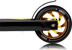Takket være HIC-kompressionssystemet er forbindelsen mellem forgaffel og clamp usædvanligt stærk og pålidelig. Polyurethan-hjul kombineret med ABEC-9 lejer giver en jævn og hurtig kørsel, mens bagbremsen og det skridsikre dæk øger sikkerheden. Diameteren på 110 mm balancerer hastighed og smidighed perfekt.