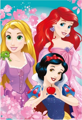 Snehvide, Ariel og Rapunzel på ét farverigt billede motiverer børn til at lægge puslespil og stimulerer deres fantasi.