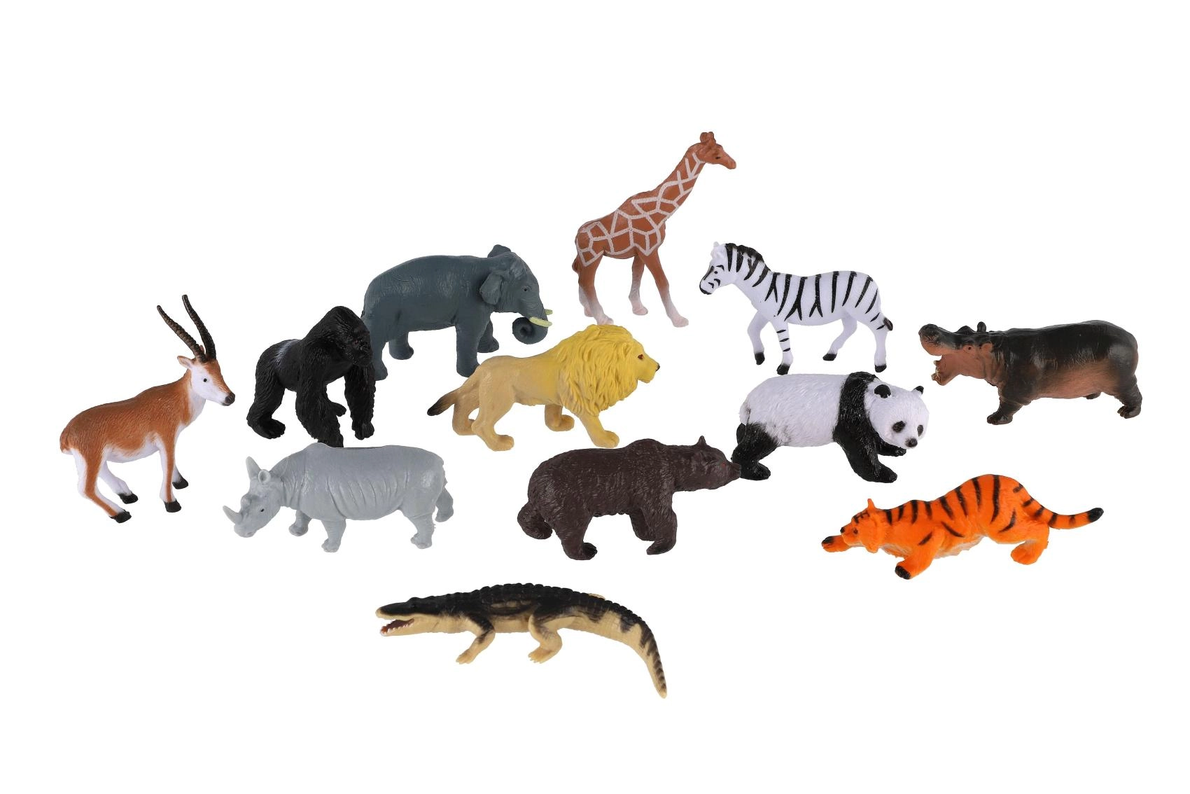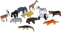 Sættet omfatter populære safaridyr – løve, zebra, giraf, elefant, næsehorn, flodhest, tiger, krokodille, panda og flere – til varieret leg og små scener.
