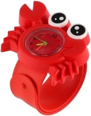 Sjove børneure med motiver af havdyr gør det nemt at lære klokken og er behagelige at have på. Takket være den selvomviklende (slap) silikonestrop tages uret nemt på med ét “svip”. Farveopdelte visere hjælper børn med at læse tiden bedre, og det integrerede LR626-batteri sikrer, at uret kan bruges med det samme. Fås i 5 glade motiver – delfin, søstjerne, skildpadde, haj og krabbe.