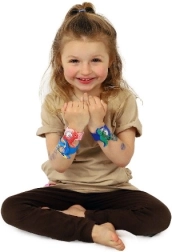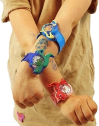 Et let “klip” mod håndleddet, og remmen vikler sig selv fast. Hurtig, sjov og sikker påtagning uden besværlige spænder.