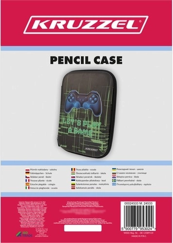 Stilfuldt skolepenalhus med 3D-motiv af en gamepad tilbyder holdbar EVA-konstruktion, dobbelt lynlås for nem åbning og gennemtænkt organisering indvendigt. Her finder du 2 netlommer, 6 elastikstropper til skriveredskaber og et rummeligt rum, hvor der også er plads til en tablet op til 8,5″. Gamer-design med teksten “LET’S PLAY A GAME” vil glæde alle spilfans. (Skoleartikler er ikke inkluderet.)