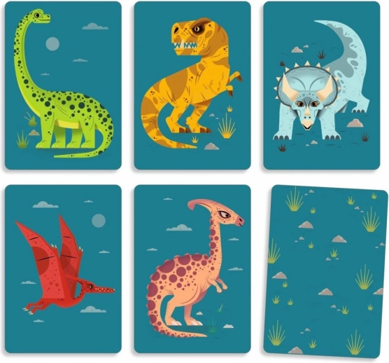 Djeco Dino Draft – et hurtigt, strategisk kortspil med dinosaurer. Draft kort, planlæg dine træk og sammensæt de mest fordelagtige kombinationer. 60 kort og vejledning.