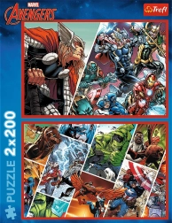 Oplev superheltenes verden med to originale motiver, der viser ikoniske figurer fra Avengers-teamet. Hvert puslespil har 200 brikker og danner efter samling en detaljeret illustration på 410 × 275 mm. Ideelt til både børn og voksne MARVEL-fans, der søger kvalitetsrigt og underholdende puslespil.