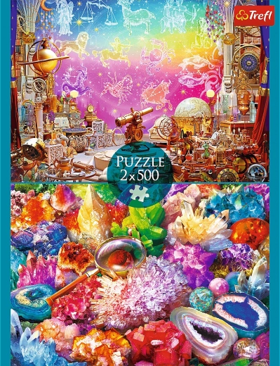 Nyd timer med afslapning og fordybelse med dette sæt puslespil 2×500 brikker. Fantasifulde motiver – magiske observatorier og farverige krystaller – vil glæde både elskere af smukke illustrationer og ivrige puslespilsentusiaster. Hvert færdigt billede måler 48 × 34 cm, perfekt til indramning.