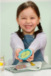 Giv børn endnu mere glæde ved at passe deres elskede BABY born-dukke. De magiske madplader skal blot fugtes, og på tallerkenen trylles et farverigt menu frem med det samme med søde ansigter. Når pladerne tørrer, forsvinder billedet og er klar til næste fodring.