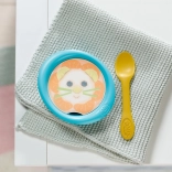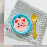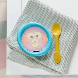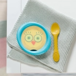 Let skål med praktisk kant og barneske gør det muligt for børn at efterligne ægte fodring af dukken.