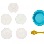 - 1× skål, 1× ske, 5× plade med magisk madmotiv