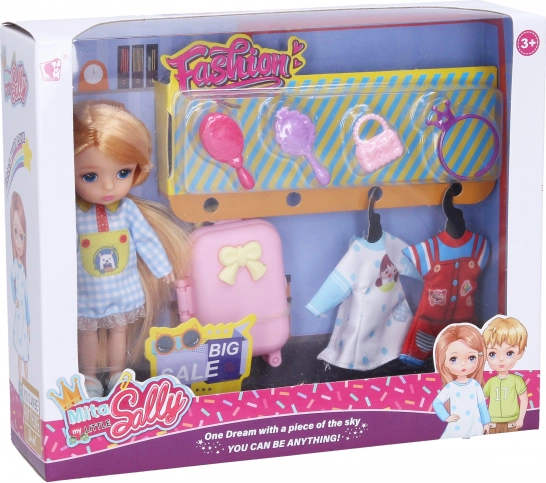 Rejsedukke på 13 cm er den perfekte ledsager for enhver lille pige, der ønsker eventyr. Indeholder rejsekuffert, 2 sæt tøj, 2 kamme, håndtaske og krone.