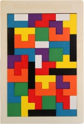 Det logiske træpuslespil bringer klog underholdning til både mindre og større børn. Opgaven er at samle 40 solide træbrikker i forskellige former og farver, så de danner et kompakt rektangel. Spillet understøtter naturligt formanalyse, rumlig forestillingsevne og problemløsning.