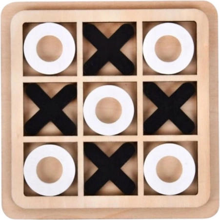 Træspillet tik-tak-toe er en tidløs klassiker, der udvikler strategisk planlægning, situationsanalyse og hukommelse. Takket være den solide træudførelse og afrundede kanter er det sikkert og behageligt at røre ved, mens de kontrasterende X- og O-brikker giver fremragende overblik.