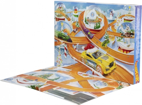 Åbn hver dag en låge og find en HOT WHEELS-bil eller vintertilbehør. Du får 8 køretøjer i skala 1:64 og 16 tematiske accessories.