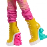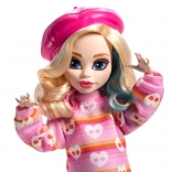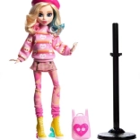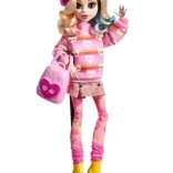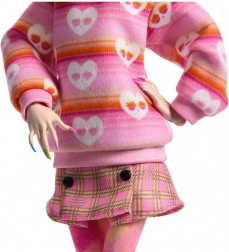 Monster High x Wednesday-kollektionen hylder den mørke humor og den stemning, vi kender fra serien. Enid Sinclair er ikke bange for at blande mønstre i sit outfit: en stribet sweater, en ternet nederdel og farverige strømpebukser smelter sammen til et ikonisk look.