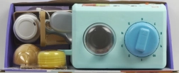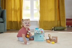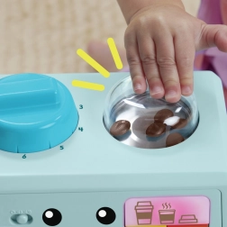 Børn kan trykke på knapperne for at simulere kaffebrygning, dreje på hjulet for skumning eller bevæge kaffemøllen for at se kaffebønnerne hoppe op. Der medfølger også lege-tilbehør: to kaffekopper, en ske, en croissant, en blød taske til varer med låg, en mælkekop og en bæreplade.