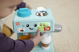 Denne kaffemaskine til børn fra Fisher-Price er designet til lærerig leg. Interaktive elementer hjælper børn med at lære alfabetet, farver og at tælle. Udnyt muligheden for Smart Stages™ til at tilpasse læringsniveauet. Kaffemaskinen inkluderer mere end 75 lyde, sange og sætninger, der stimulerer børns fantasi.