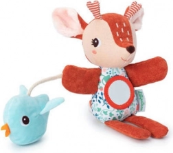 Hånddukken er ideel til højtlæsning, historiefortælling og ro før sengetid. Det integrerede spejl, rasleklokke/klokke og knitrende fugl stimulerer naturligt syn, hørelse og berøring. Et oplagt gavetip til babyer fra 6 måneder.