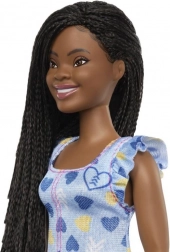 Denne mode-dukke BARBIE giver børn inspiration til at fortælle deres egne historier. Hun er klædt i en iøjnefaldende blå kjole pyntet med farverige hjerter, suppleret med lyserøde briller og sko. Lange fletninger og et muntert udtryk gør hende til den ideelle ven til hverdagsleg og udvikling af fantasien.