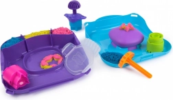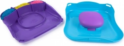 Sættet KINETIC SAND bevægelige forme giver en unik måde at få dine kreationer til at 'vågne til live'. Hæld og lagdel det pink, gule og blå sand i kassen, udjævn det med den takkede spatel, og skab motiver med komprimeringsværktøjet og stemplerne. Når du trykker på skumunderlaget, begynder mønstrene at bevæge sig og ændre sig – resultatet er fascinerende, og legen slutter ikke.