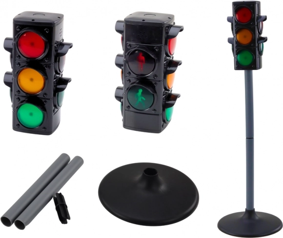 - Lysende trafiklys: efterligner ægte signaler (drives af 3× AAA, medfølger ikke)