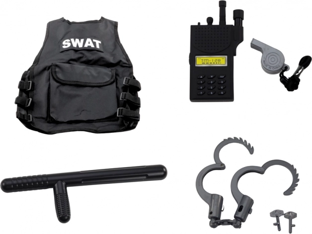- Realistisk tilbehør: vest, stav, håndjern, fløjte, walkie-talkie