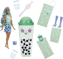 Barbie Pop Reveal Bubble Tea-dukker bringer legende unboxing trin for trin: skru låget af med farverigt slim, gennembor folien med sugerøret, og afslør dukken med en let duft af bubble tea. Hver pakke gemmer på tematiske elementer inspireret af favorit-smage – fra milk tea og frugtnydelser til grøn te og mangokager.