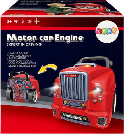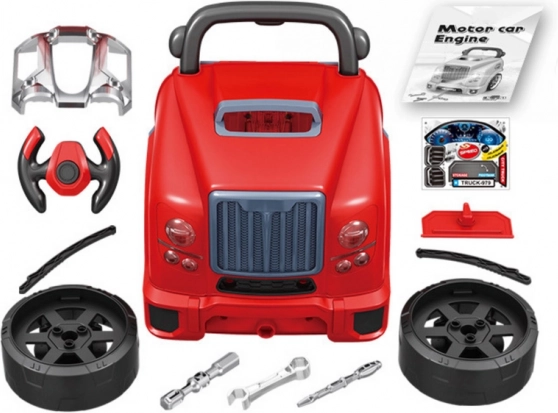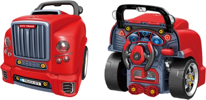Sættet til børneværksted er en rød lastbil, der fungerer som en lærerig legetøjsoplevelse til at udvikle børns mekaniske færdigheder og kreativitet. Denne lastbil muliggør adskillelse og samling af dele, hvilket understøtter fantasi og finmotorik.