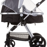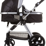 Stor justerbar kaleche med solskærm, 5-punkts seler med polstring, rummelig kurv, aftagelig bøjle, fodbetræk, taske, kopholder og myggenet – alt inkluderet.