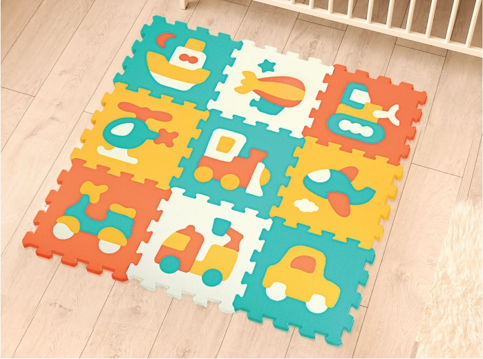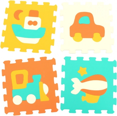 Skumpuslespil med transportmidler til børn, sjovt og lærerigt med sikre 32x32 cm brikker.
