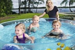 Installationen klares på et øjeblik – vælg blot et plant underlag og fyld vand i. Den runde form med en diameter på 183 cm og en højde på 38 cm giver masser af plads til leg og afkøling på varme dage.