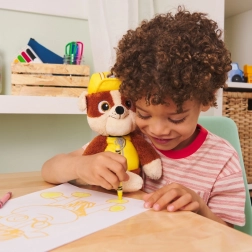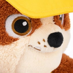 Dette 33 cm store Rubble er i gul byggeuniform og hjelm, med det karakteristiske Paw Patrol emblem og brun ply, ideel til leg på farten.