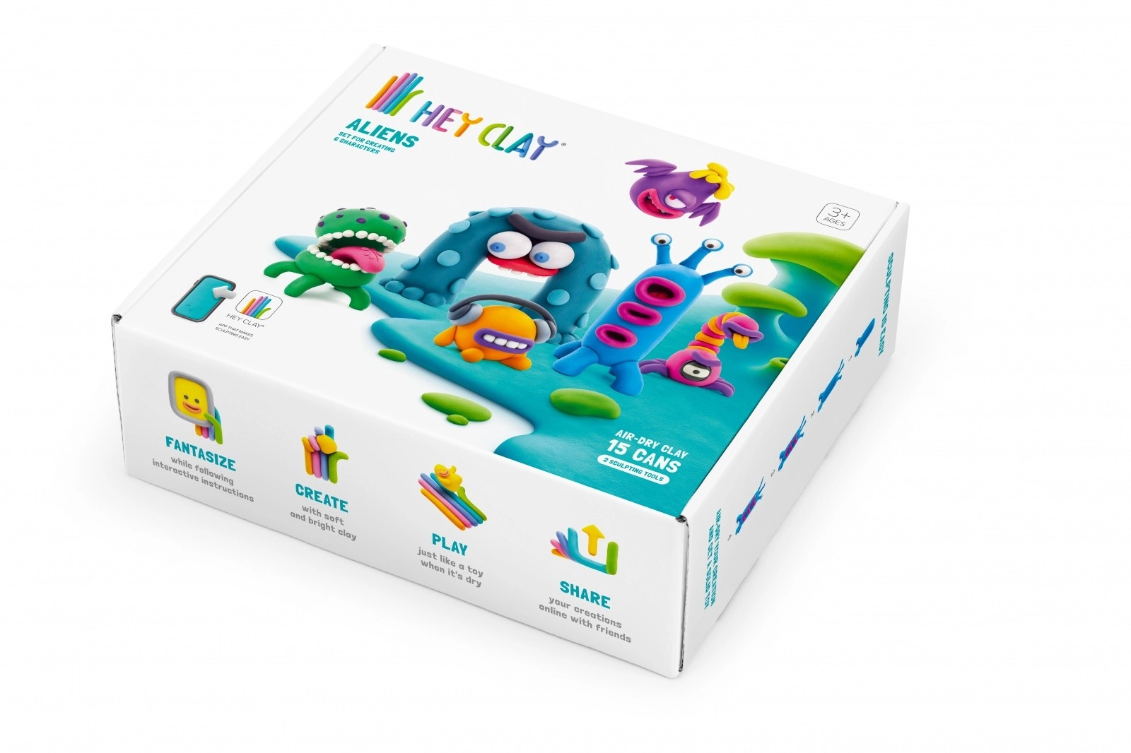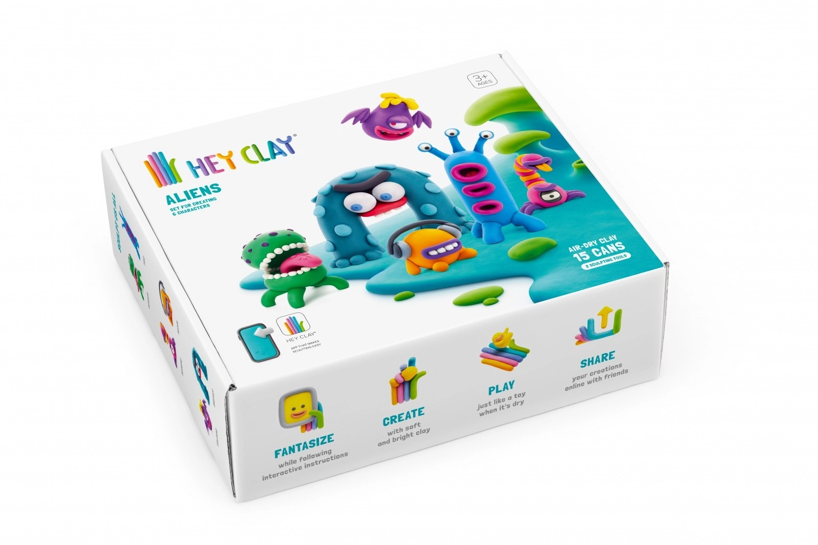 Hey Clay Aliens-sættet bringer børn en legende vej ind i kreativitetens verden. Den lette, selvhærdende “skum”-modellervoks klistrer ikke og smudser ikke, holder formen godt og efter tørring kan figurerne udstilles eller bruges til videre leg. Med 15 strålende farver og enkle trin-for-trin-vejledninger i appen kan børn lave op til seks søde rumvæsner og har stadig materiale til egne ideer.