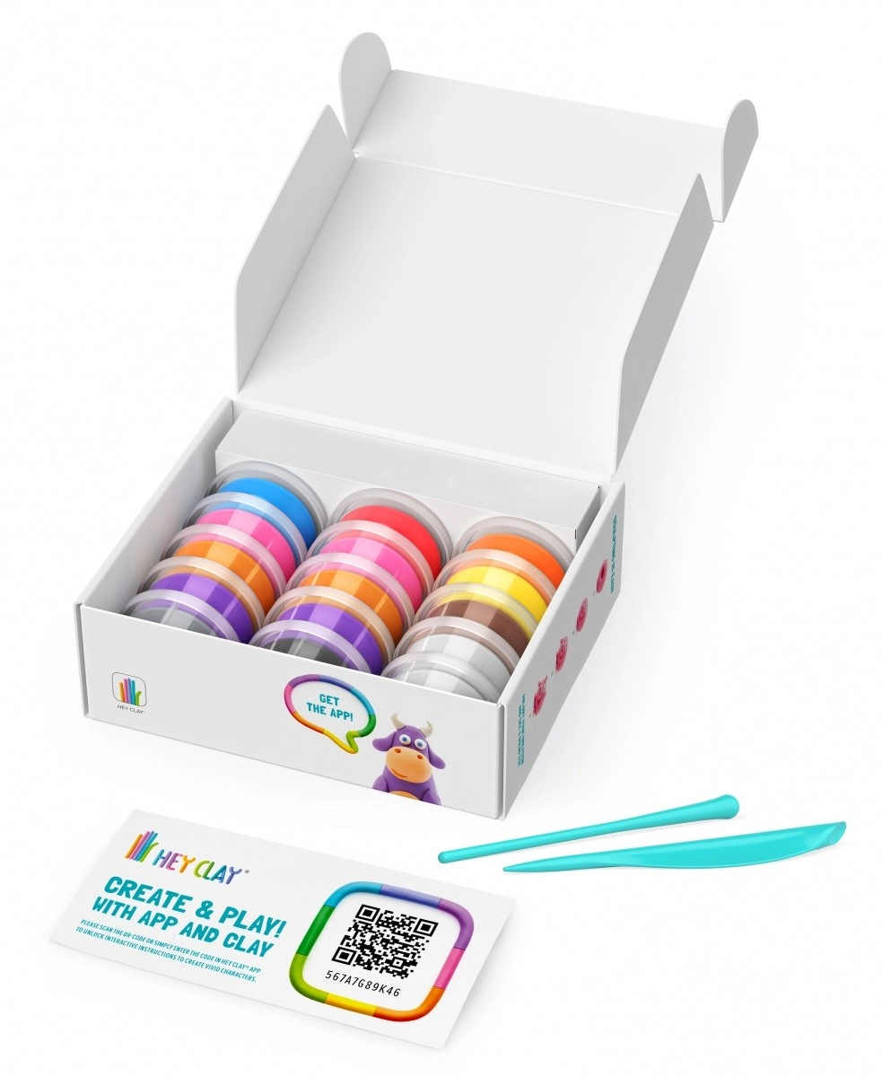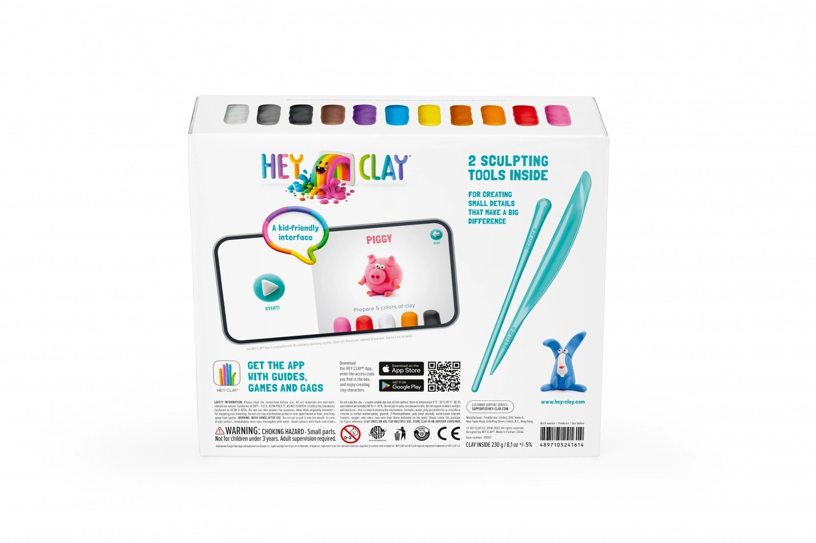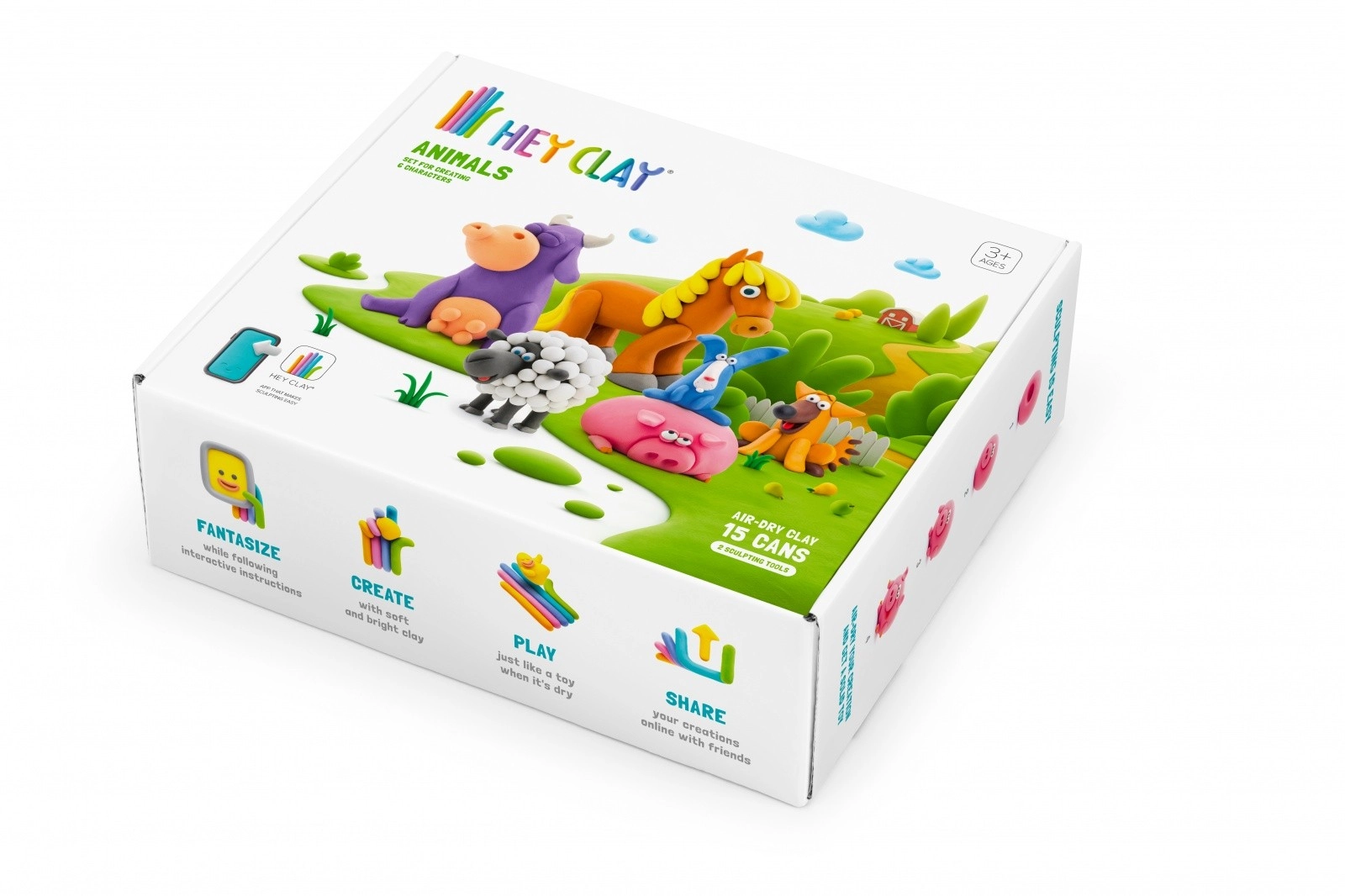 HEY CLAY Dyrefigurer er et kreativt sæt til små skulptører. Den lette skummodellervoks klistrer ikke, sviner ikke, og hærder i luft efter endt modellering, så børn kan beholde deres figurer. Takket være det rige farveudvalg og trin-for-trin-vejledninger i den gratis app kan de nemt skabe op til 6 søde dyr.