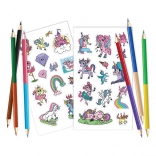 Rejse-malebogen Enhjørninger byder på sjov og kreativitet under rejsen takket være 96 sider med aktiviteter, 2 ark klistermærker og 6 dobbeltsidede farveblyanter. Ideel til små kunstnere på farten!