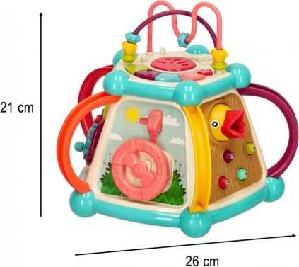Oplev en verden af leg og læring i ét smart legetøj. Den interaktive 7-i-1-kube tilbyder en ny aktivitet på hver side, som motiverer børn til at udforske, udvikler forestillingsevnen og giver meningsfuld underholdning. Børn lærer naturligt farver, former og tal og træner tålmodighed og koncentration.