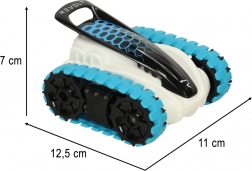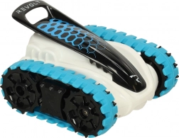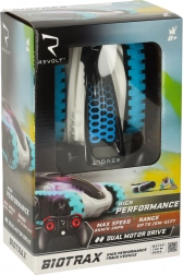 REVOLT BIOTRAX er en futuristisk bæltegående RC-model, der udmærker sig ved fremragende fremkommelighed og stabilitet på mange forskellige underlag. Det robuste plastchassis og de brede gummibælter giver suveræn trækkraft, så du får en jævn kørsel på tæppe, fliser og græs. LED-effekter fremhæver det aggressive design i blå-hvidt.