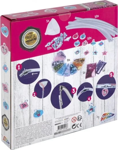 Skab dine egne unikke smykker med GRAFIX sættet til at lave glitrende vandarmbånd. Pakken indeholder materialer til 10 farverige armbånd, magiske vedhæng med motiver (inklusive enhjørninger) og glimmer for en strålende effekt. Fantastisk sjov, der udvikler kreativitet, finmotorik og fantasi.
