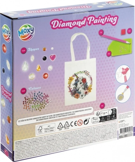 Skab din egen stilfulde taske med enhjørningemotiv ved hjælp af et sæt til diamantmaleri. Sættet indeholder alt, hvad du behøver – en stoftaske, farvede sten, en applikationspen, en bakke og voks. En nem og afslappende kreativ aktivitet, der passer til både børn og voksne uden behov for kunstneriske færdigheder.