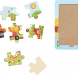 Træpuslespillet Høst med 9 brikker er et godt valg til de første puslespil. Takket være den kvalitetsmæssige træbund og robuste brikker er det let for børn at håndtere, og hver succes styrker deres selvtillid. Den fræsede kant på bundpladen hjælper med at guide brikkerne til den rigtige plads.