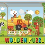 Oplev et sødt træpuslespil med høstmotiv, ideelt til de mindste. Brikkerne ligger på en solid bundplade med fræset kant for nem samling. Støtter finmotorikken, udvikler fantasien og giver børn glæden ved deres første succeser.