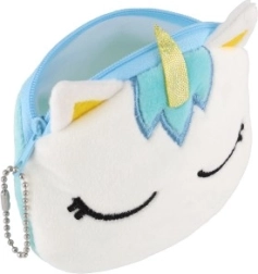 Dette lille ruskind pung med unicorn tema er en perfekt tilføjelse til enhver taske. Med sine kompakte dimensioner 12 x 10 x 2 cm passer den nemt i enhver taske og rummer mønter eller småting. Pungen er udstyret med en lynlås, der holder alle skatte sikkert indeni.