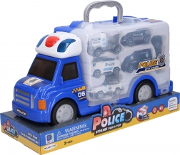 Politibil med effekter og 6 små biler er det ideelle legetøj for små bil- og politientusiaster. Lys- og lydeffekter giver legen realisme og sjov.