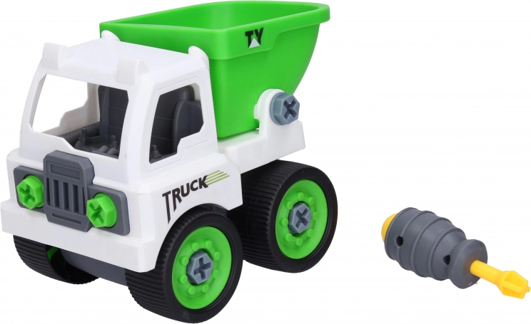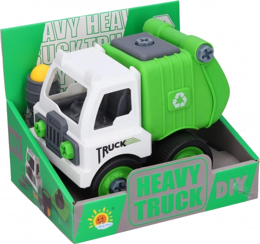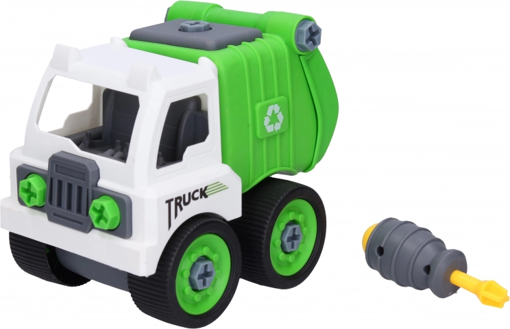 Denne oprydningsbil-legetøj giver dobbelt sjov med mulighed for at skifte mellem tipvogn og skraldebil. Børn kan ved hjælp af den medfølgende skruetrækker samle og skille bilen ad efter deres egne idéer, hvilket styrker deres motoriske færdigheder og kreativitet.