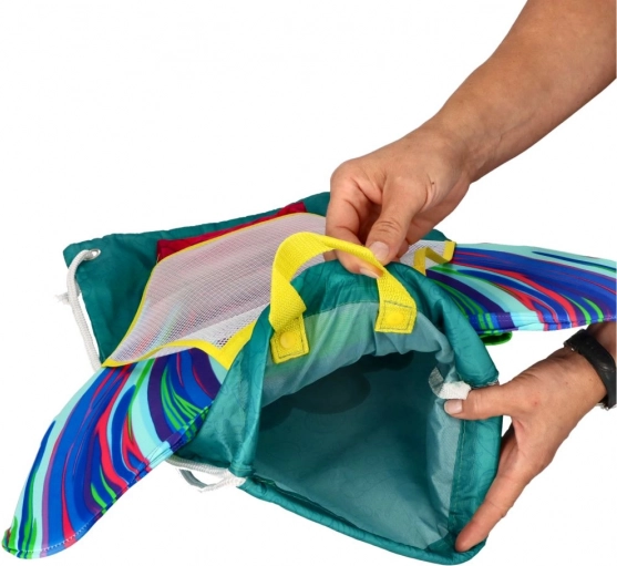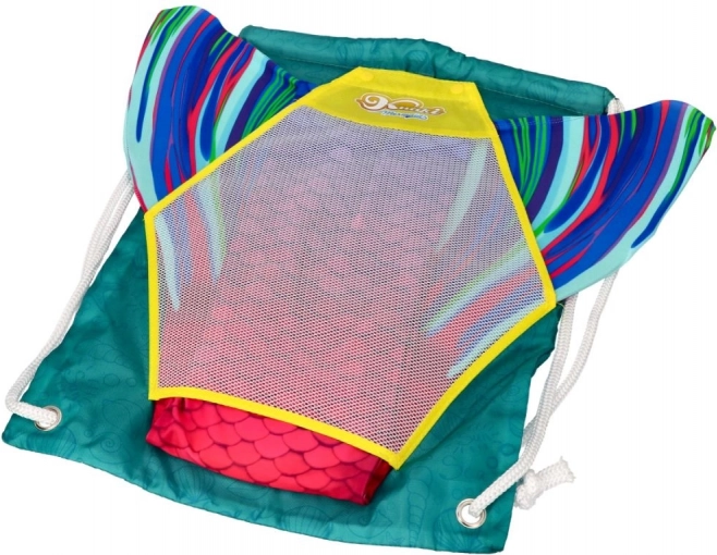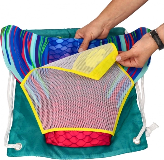 En stilfuld taske med maritimt motiv hjælper dig med nemt at transportere svømmeudstyr – fra hale/monofinne til badetøj og håndklæde. De åndbare dele gør, at indholdet tørrer hurtigt efter brug, så det ikke forbliver vådt længe.