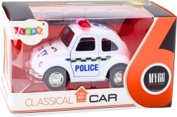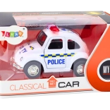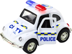 Denne klassiske politibil er udstyret med friktionsdrev, som gør, at den bevæger sig fremad efter optræk, hvilket skaber realistiske scener med politijagter eller patruljer. Åbnebare døre giver ekstra realisme til rollelegen.