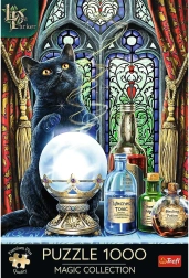 Saml en magisk scene med Trefl-puslespil fra serien Premium Plus Magic Collection – motivet Den magiske lærling. Det 1000-brikkers puslespil udmærker sig ved kvalitetskarton, unikke brikformer, FSC-certificering og en medfølgende plakat/forlæg for lettere samling. Når det er samlet, måler billedet ca. 48 × 68,3 cm.