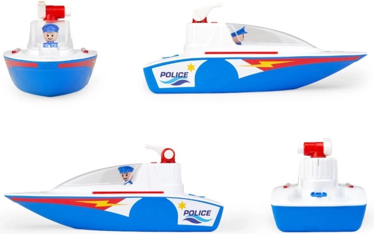 Denne robuste LENA politibåd er skabt til vandeventyr – den sejler perfekt i badekarret, børnepoolen og ved havet. Med den åbnbare kabine med to sæder kan børnene lege spændende scener og tage på patrulje med den medfølgende politifigur.