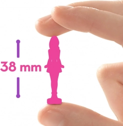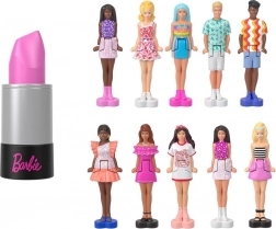 Træd ind i MINI BARBIE LAND, hvor store drømme udspiller sig i mini-format. Hver læbestift gemmer én mini-dukke Barbie eller Ken på cirka 3,5 cm, en farverig stander formet som et hjerte og fungerer også som skjul og dekoration. Ideel som en lille gave, til samlerglæde og til at tage med på farten.