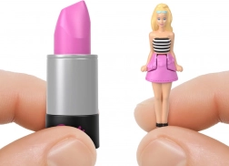 Den unikke drejemekanisme i bunden af læbestiften afslører figuren på et øjeblik. Dukkerne kan bøjes i taljen og stilles nemt på standeren. I kollektionen finder du forskellige stilarter og figurer – fra sporty til aftenlooks – for endnu mere sjov og for at kunne kombinere med MINI BARBIE LAND-sæt (sælges separat).